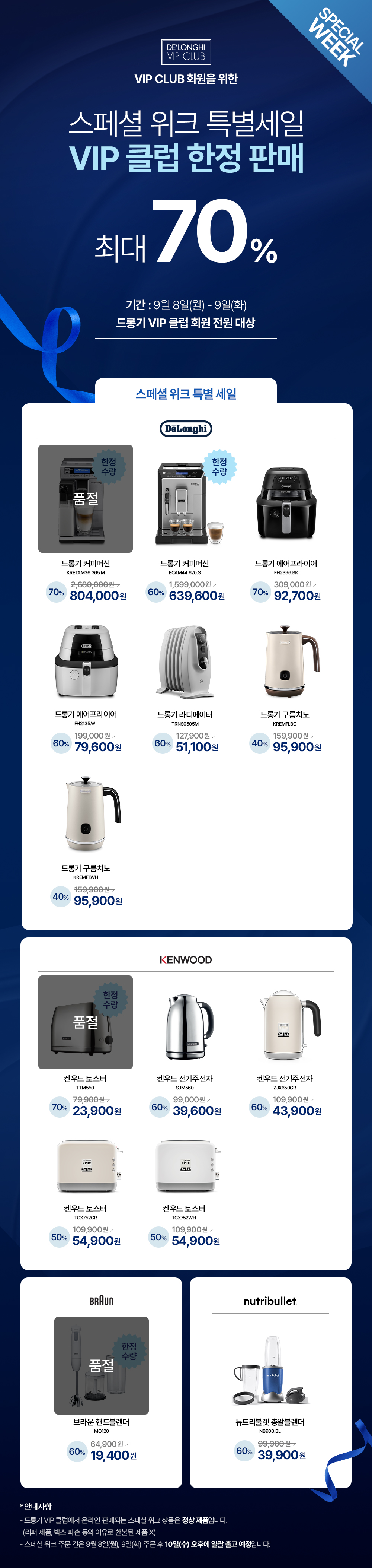 [최대 70%] 드롱기 VIP 클럽 회원만을 위한 스페셜위크 한정 판매