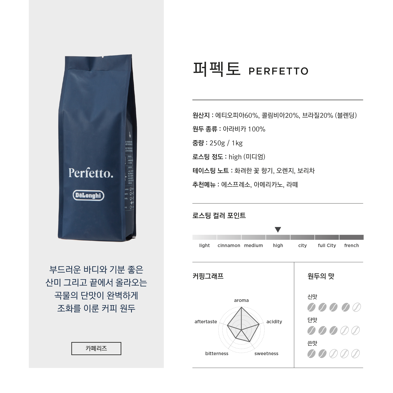드롱기 커피원두 퍼펙토 250g (카페리즈)